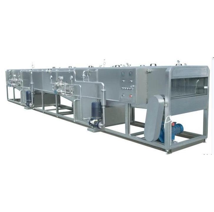 噴淋殺菌機,采用循環(huán)熱水噴淋殺菌、溫水預(yù)冷、冷水冷卻等多段處理,具有節(jié)水、節(jié)熱能等優(yōu)點。